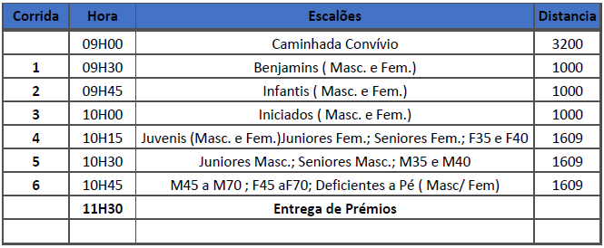 As provas serão independentes por escalão. Podem, no entanto, efetuar-se várias séries do mesmo escalão quando o número de inscrições assim o exigir.
