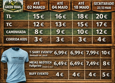 Nota: A organização poderá cancelar ou adiar o evento caso se verifiquem motivos de força maior, como por exemplo: más condições climatéricas que impossibilitem a realização do evento ao ar livre, catástrofes naturais, falta de condições técnicas externas à organização e ameaças à segurança dos participantes, não sendo o valor da inscrição devolvido.