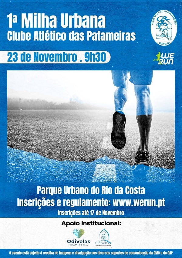 O Clube Atlético das Patameiras e a Câmara Municipal de Odivelas, com a colaboração da Junta de Freguesia de Odivelas, PSP de Odivelas, dos Bombeiros Voluntários de Odivelas, da Proclínica e da WeRun promovem, no próximo dia 23 de novembro de 2025, pelas 9h30m, uma prova de atletismo, designada por 1 Milha Urbano do Clube Atlético das Patameiras, na distância de 1.609 metros.