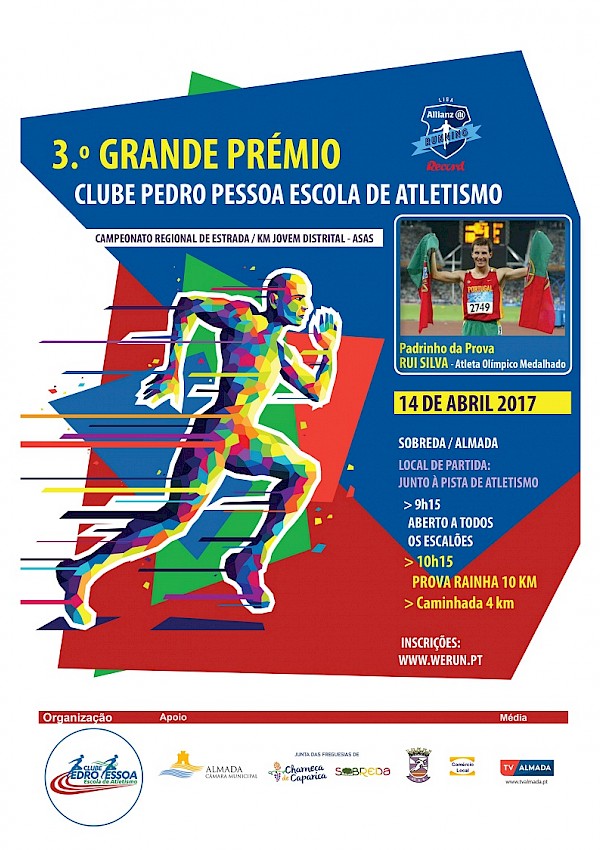 O Clube Pedro Pessoa Escola de Atletismo (CPPEA), com o apoio da União das Juntas de Freguesia de Charneca de Caparica e Sobreda, Câmara Municipal Almada, Associação de Atletismo de Setúbal, organiza no dia 14 de abril de 2017, pelas 09:15 horas, o 3.º Grande Prémio de Atletismo.