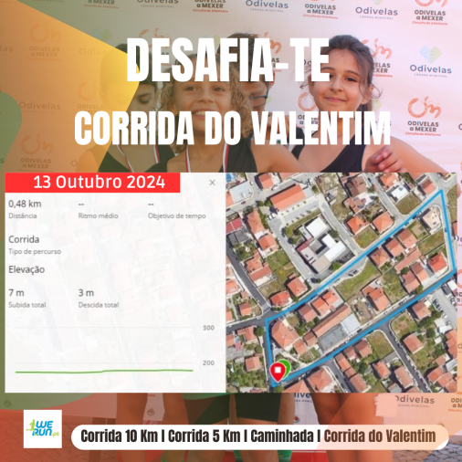 Partida - Associação Vale Grande, Rua Rainha Santa Isabel, virar à esquerda na R. Cidade de Almada, voltando a virar à esquerda na R. Cidade de Loures e no fim da mesma virar novamente à esquerda na Rua de S. Domingos chegando a meta.