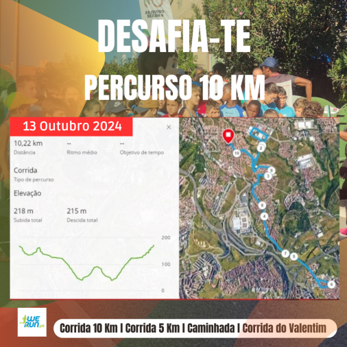 Partida - Associação Vale Grande, Rua Rainha Santa Isabel, vira-se na primeira rua à direita para a R. Rainha Dona Leonor. No fim da rua virar à esquerda para a Estrada Municipal, seguindo pela primeira rua à direita Rua Tony de Matos em direção à Rua Viriato. Nessa rua vira-se na primeira à esquerda até entrar na rua Alameda Silva Porto. Voltamos a virar à esquerda na Rua R.B virando à direita na R. José Pereira, volta-se à direita na rua R. A, rotunda em frente continuando na R ua R.A virando na primeira saída entrando novamente na Rua Alameda Silva Porto até ao fim até entrar à esquerda Rua 10 de junho virar para a Rua Oeste e seguir pela Rua do Parque. No fim, virar à direita para Rua Fé, seguir até ao final da Rua Fé e depois virar à direita na Rua de Santo António até ao cruzamento da R. oeste com a R. 10 de Junho virando para a esquerda na Rua 10 de junho Depois à direita para a Rua Viriato, até ao cruzamento com a Rua Tony de Matos, onde vira à esquerda, e à esquerda para a Estrada Municipal, à direita para a R. Rainha Dona Leonor, à esquerda Rua Rainha Santa Isabel, onde está instalada a Meta.